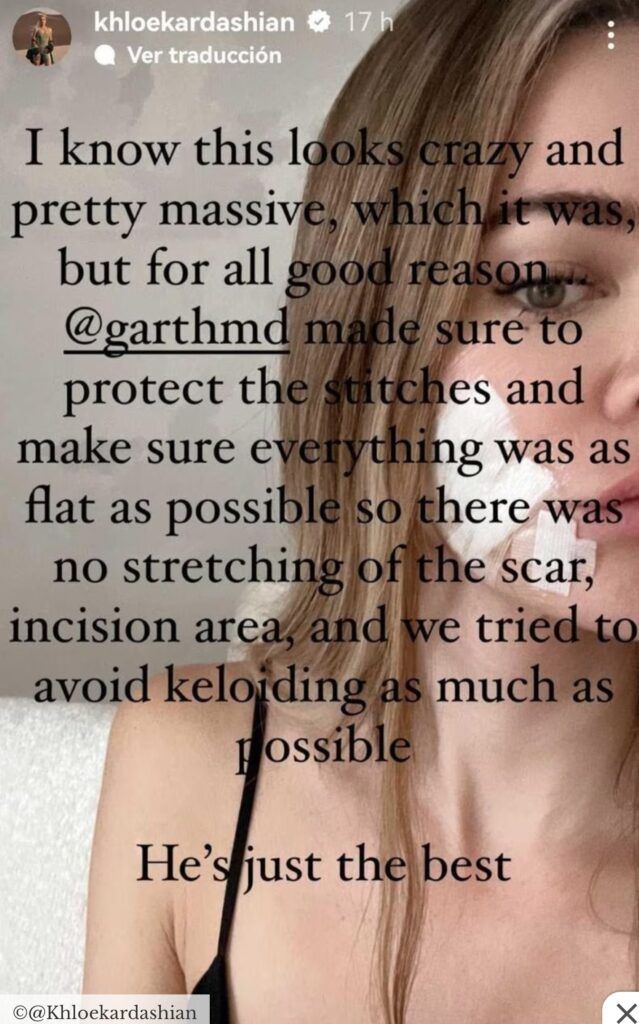 Tras la cirugía en la que le removieron el tumor, a Khloé le quedó una especie de hendidura en la mejilla, la cual la tenía sin cuidado, hablando estéticamente, pues se sentía feliz por estar sana. “Definitivamete no me quejo, prefiero tener una hendidura que un melanoma. Estoy increíblemente agrdecida con todos los doctores que me ayudaron a través de esta batalla contra el cáncer”, escribió en otra de sus stories.