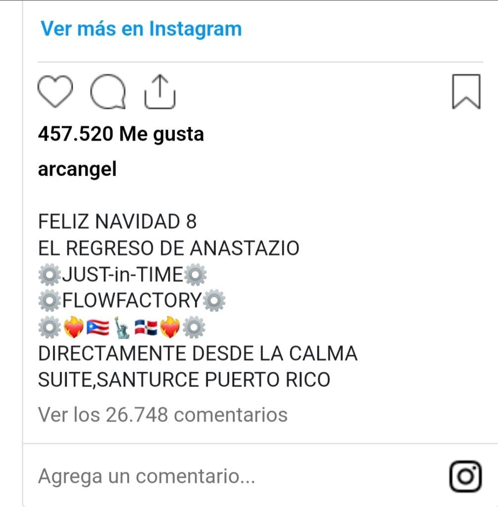 “Mañana concierto SOLDOUT en Washington Dc y tu Arcángel esperando q bad bunny te monte en una canción o te invite pa un concierto pa poder revivir tu carrera y tu q esperas pacientemente maman… en todas las entrevistas, tranquilo q ya mismito te lleva pal dealer brother. Tu álbum salió y nadie se dio cuenta, eso lo ponen en la calma nama cuando tú llega pa q no te sientas mal”, escribió Anuel AA.