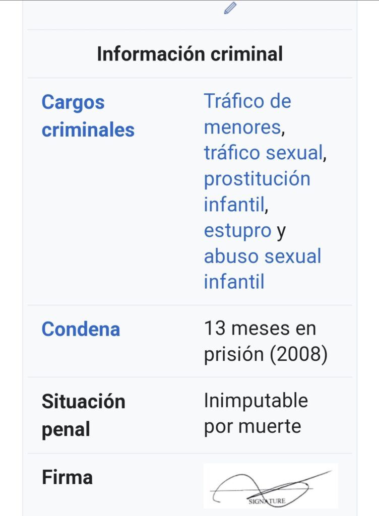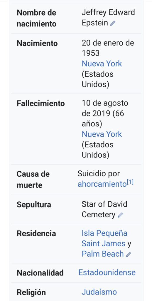 Jeffrey Edward Epstein (Brooklyn, 20 de enero de 1953-Manhattan, 10 de agosto de 2019)[2] fue un pedófilo magnate financiero[3]estadounidense, condenado[4] por una red de tráfico de menores en el mundo de élite.[5][6] Comenzó su carrera como funcionario financiero en el banco de inversión Bear Stearns, antes de fundar su propia firma, J. Epstein & Co. Hasta el momento de ser acusado por delitos sexuales en 2008, era conocido como un multimillonario con enorme influencia política y social.[7] En 2005, la policía de Palm Beach en Florida comenzó a investigarlo, después de que un padre lo denunciara por acosar a su hija de catorce años. Epstein se declaró culpable, y un tribunal del Estado de Florida lo condenó en 2008 por solicitar (tremendo hp)prostitución y tentar a la prostitución a menores.[8]