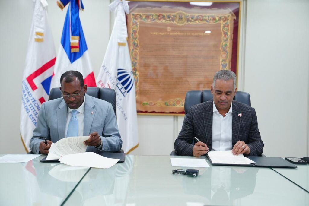 PIE DE FOTOSFoto 1…El ministro Joel Santos y el director de la Utect, Duarte Méndez, firman el convenio para la titulación de los terrenos de El Nuevo Llagal.