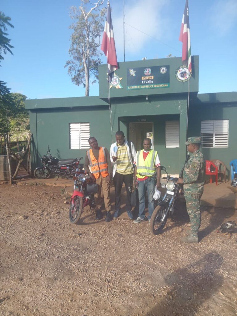 Mientras que en Elías Piña, fueron detenidos otros 03 extranjeros sin la documentación correspondiente y conduciendo dos motocicletas marcas Z3000 y CG.El grupo de indocumentados trató de evadir el puesto de chequeo El Valle en la referida demarcación.