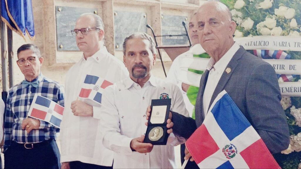 El presidente de Efemérides Patrias aprovechó la ocasión para entregar la medalla conmemorativa del 180 aniversario del martirio y heroísmo de María Trinidad Sánchez, a Luis de León, quien tiene 50 años de labor magisterial.