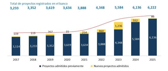 A mayo de 2025, el banco de proyectos del SNIP registra 6,222 iniciativas activas, reflejando un crecimiento sostenido en el desarrollo de inversión pública. Desde 2021, 2,588 nuevos proyectos (42%) han sido incorporados, fortaleciendo la planificación estratégica en sectores clave._