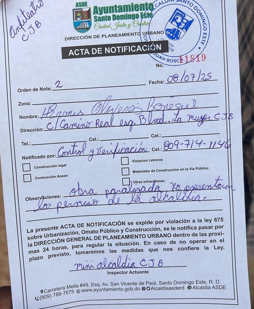 Para el señor Rafael Linares, residente y propietario en uno de los residenciales de este proyecto, dice el que no ve la necesidad para que el Alcalde Dío Astacio, tenga la necesidad de mandar a paralizar esta obra que es para el bien de todos los munícipes.