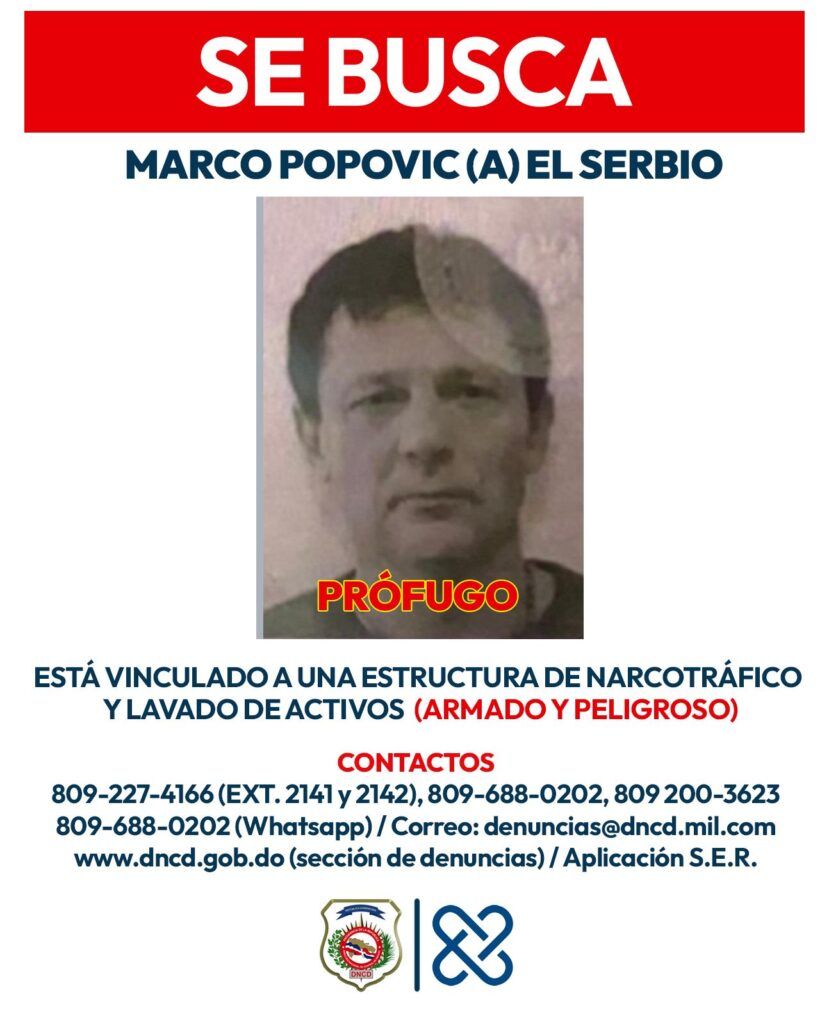 Las autoridades identificaron a los prófugos como el serbio Marco Popovic y los dominicanos Gregory Arturo Calzado Paredes (Biliguel), José Francisco Sabino Castillo (Sabino) y Francisco Colon Natera (Kelito), quienes están siendo requeridos mediante órdenes judiciales para que respondan las acusaciones que pesan en su contra. El Ministerio Público y la DNCD solicitaron la colaboración de los ciudadanos que, siguiendo los protocolos de anonimato y confidencialidad establecidos para estos casos, puedan colaborar con cualquier información que permita localizar a los fugitivos.